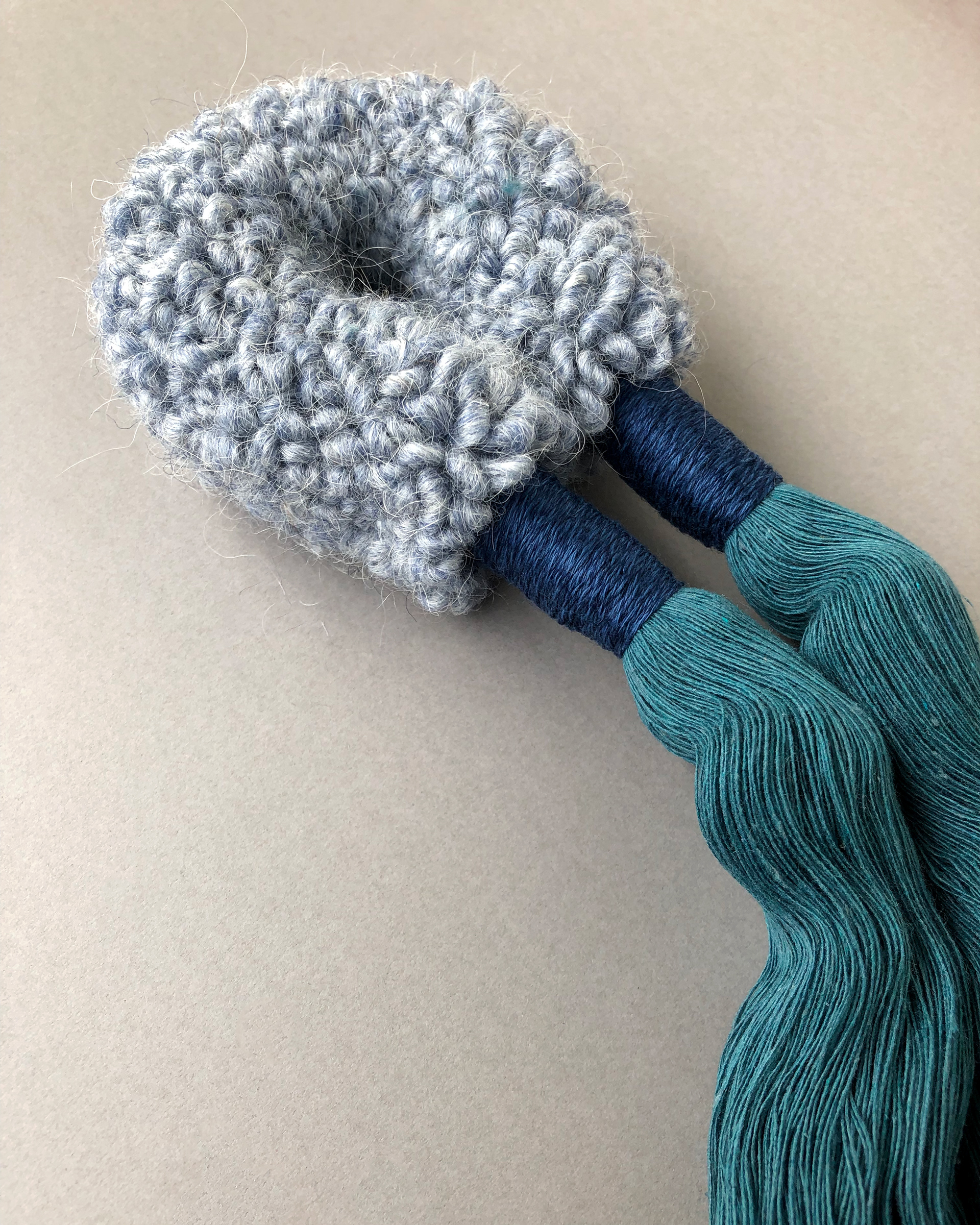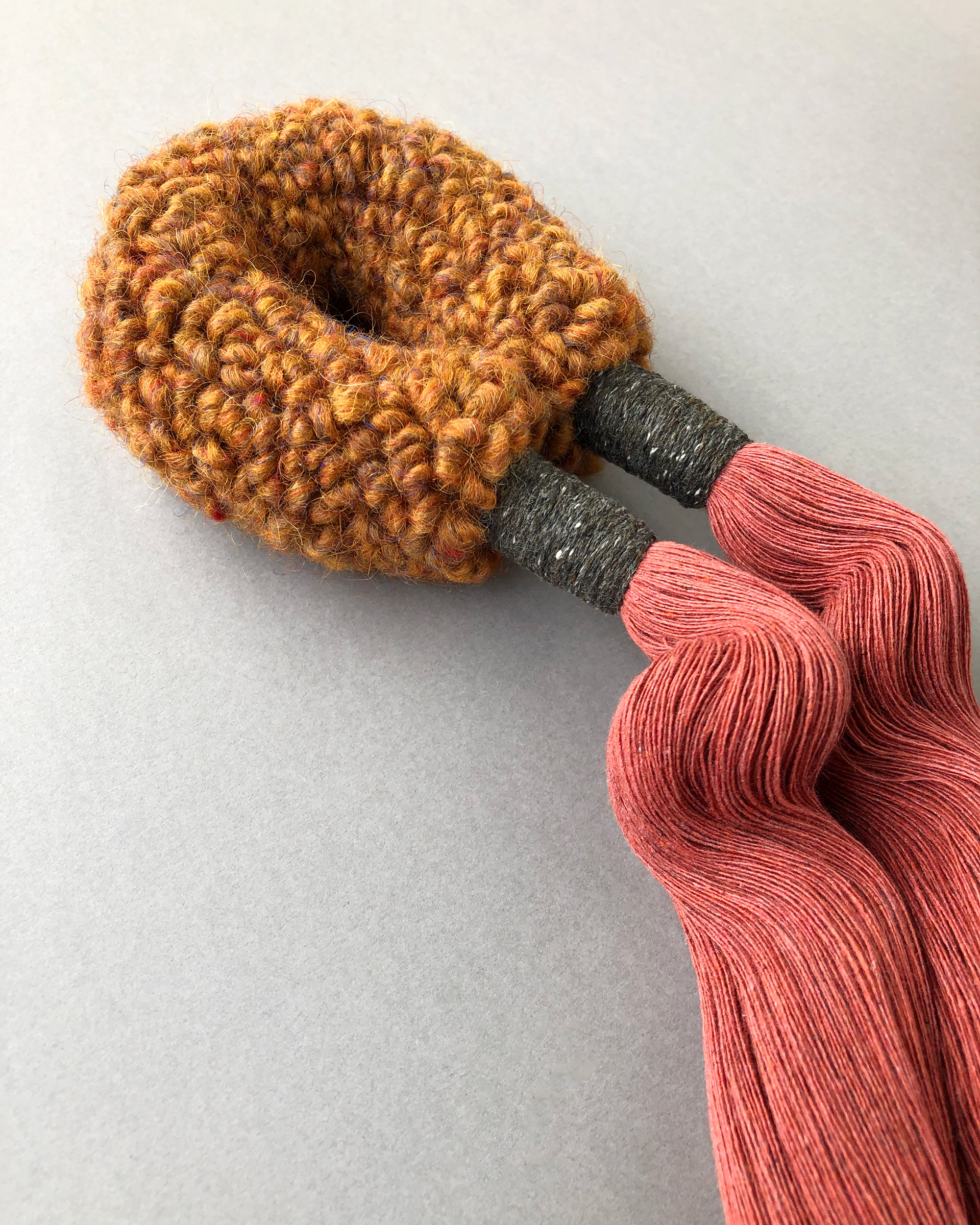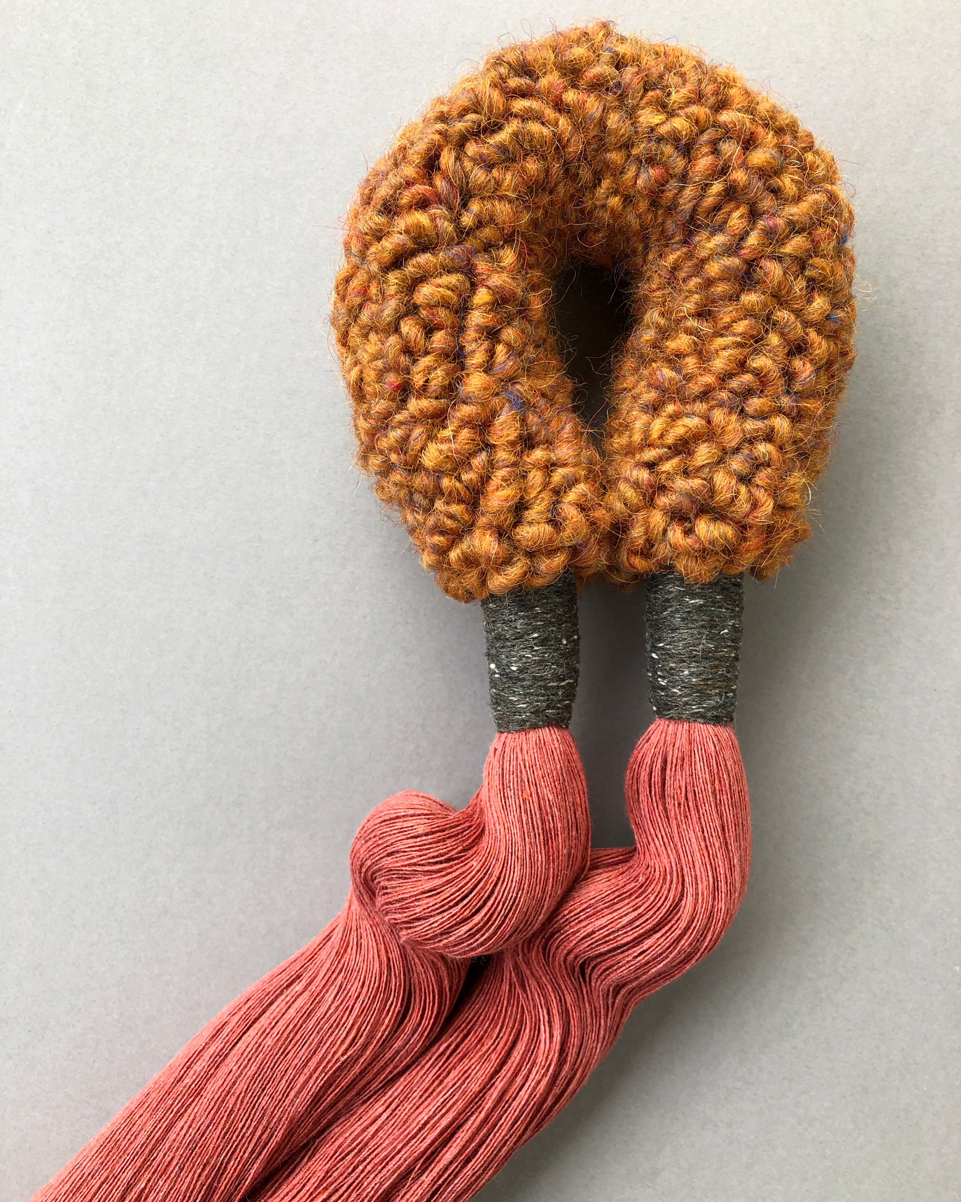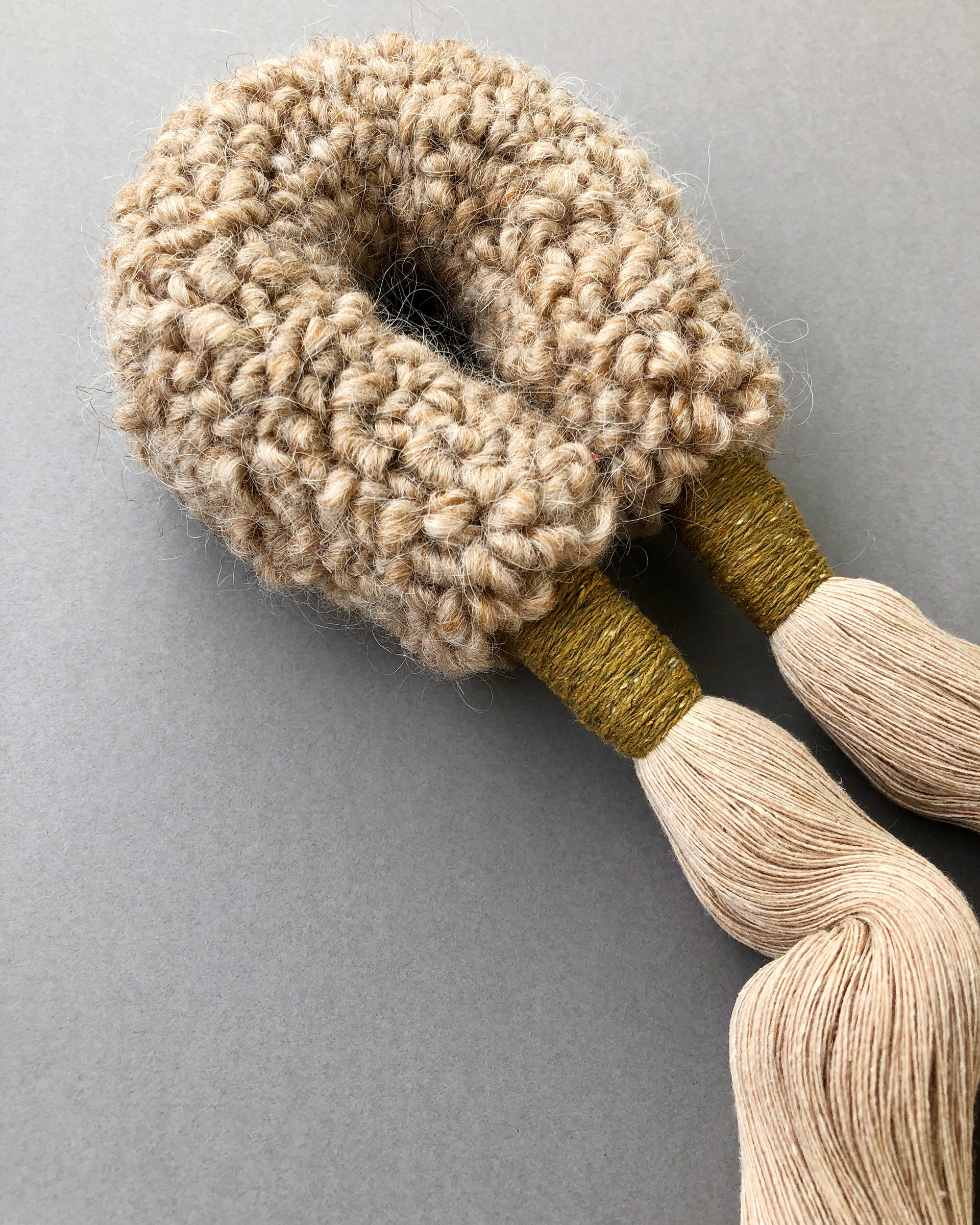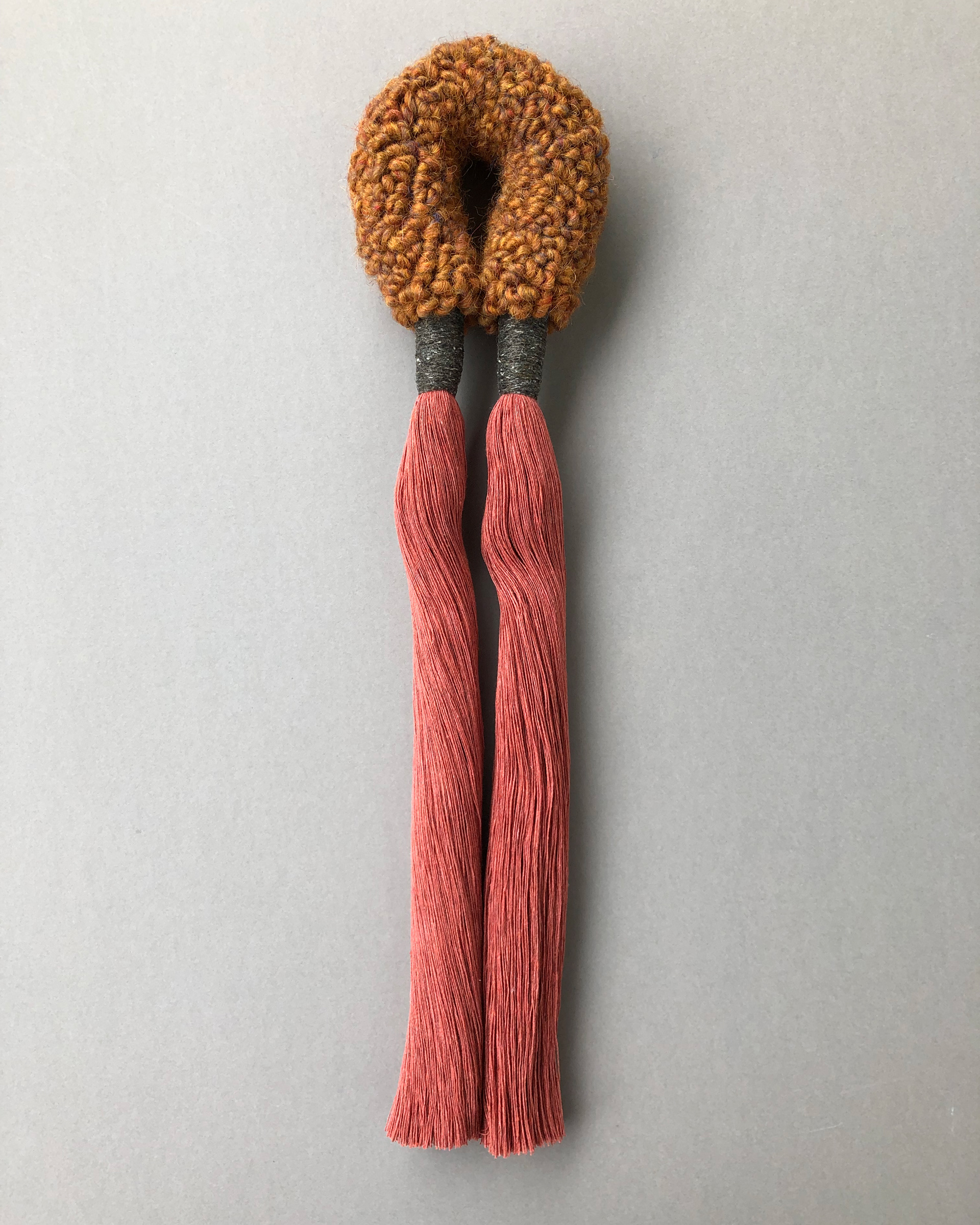 I love experimenting with punch needle projects that do not necessary need to be in a traditional frame or in an embroidery hoop. One of these playful sessions of trying out a new idea lead me to this arch form. As the surface of the arch is pretty rough from the wool yarn I wanted to add a contrast with a very smooth and soft tassels. I think the combination with an almost scratchy surface of the arch with a soft texture of the tassels makes a really nice and calming combination. Ideal to display alone or in a gallery wall.