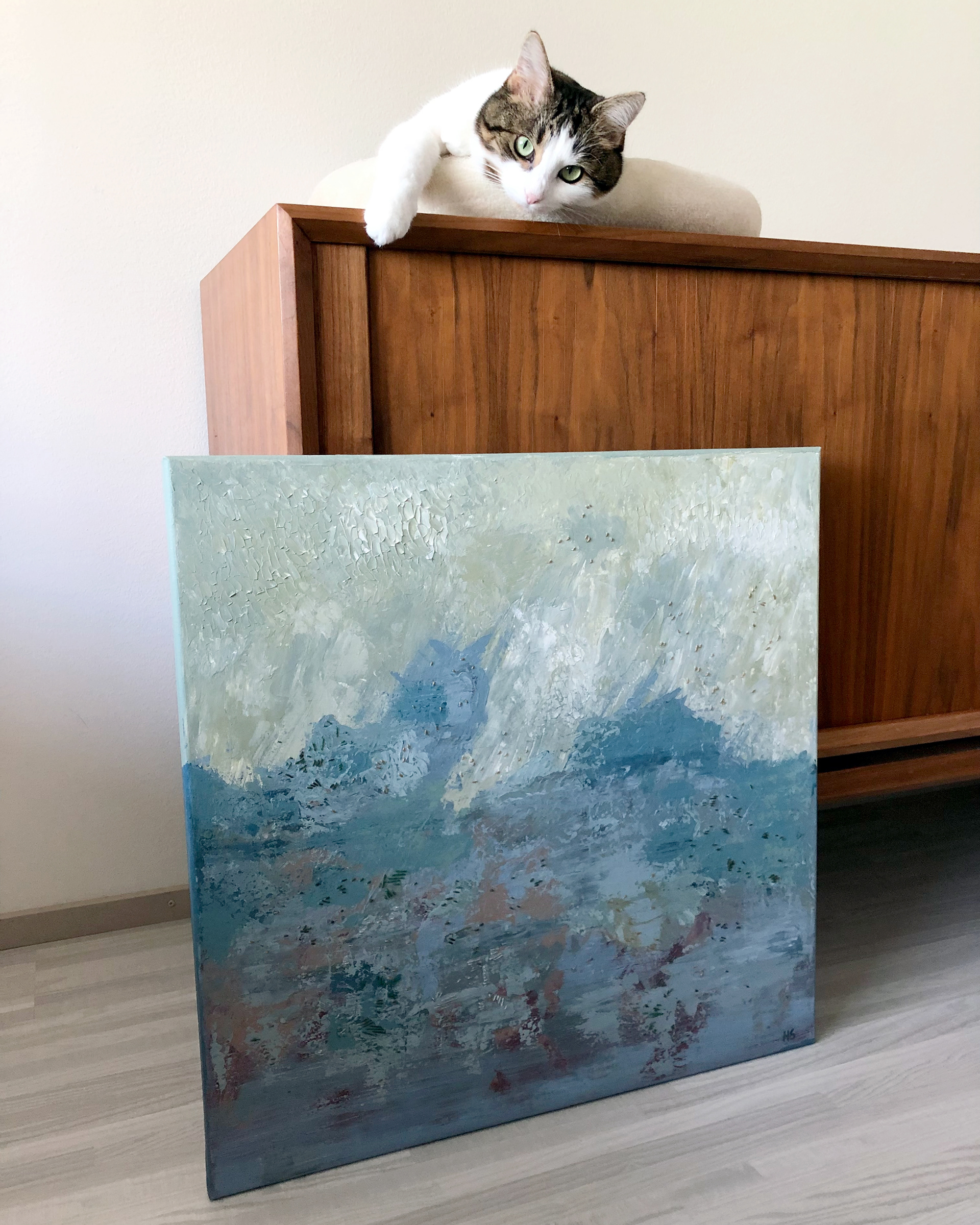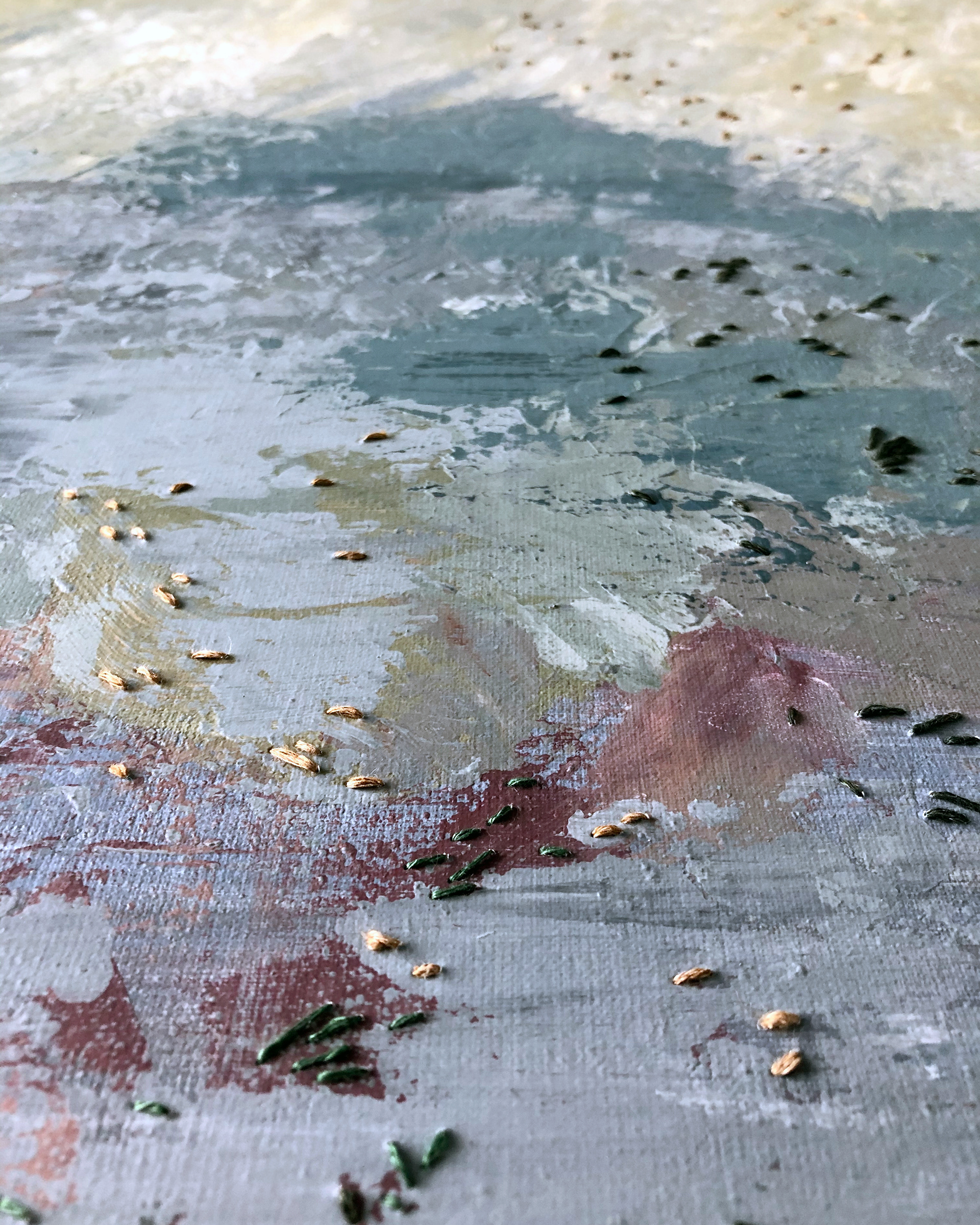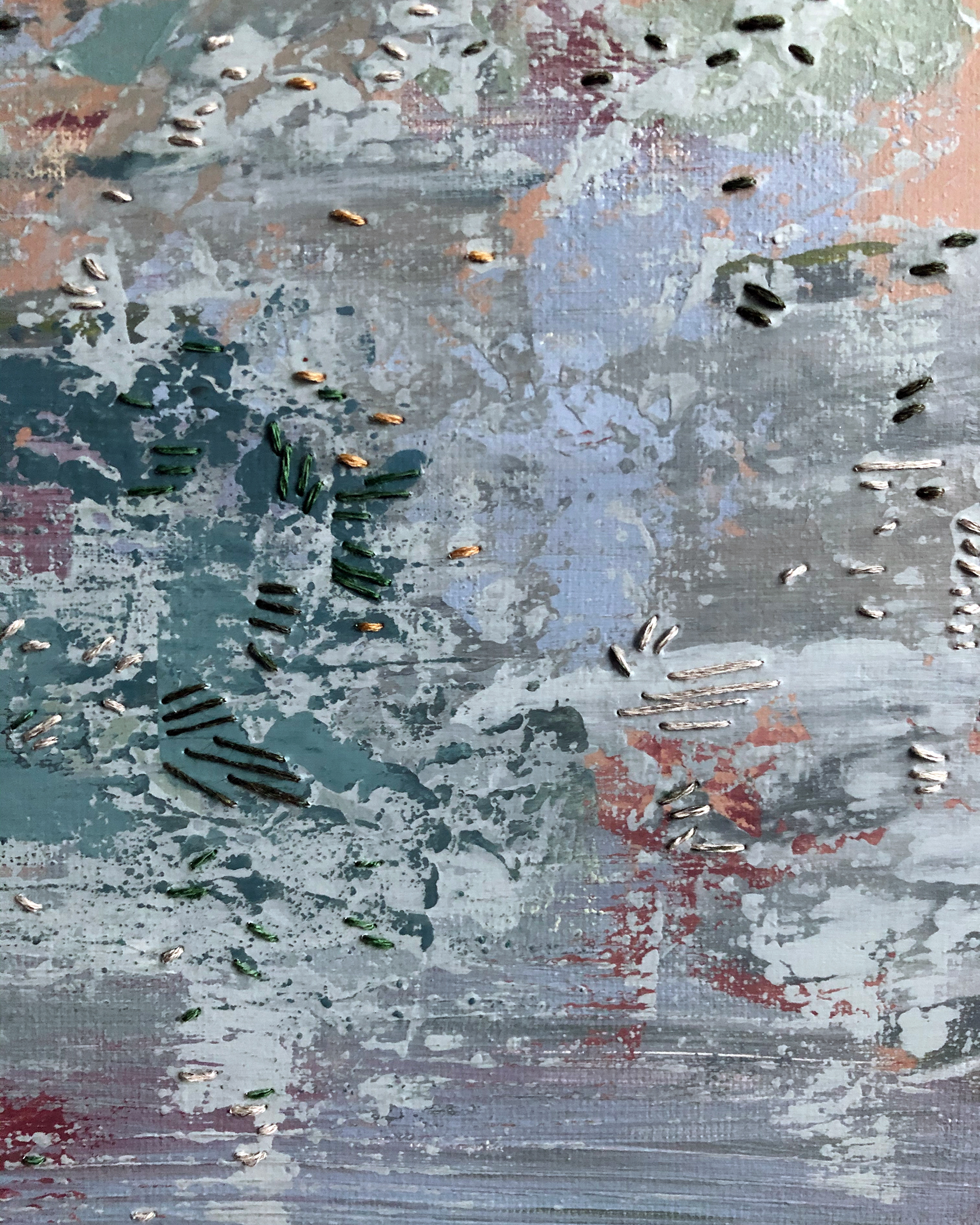 Acrylic paint and linen thread on canvas