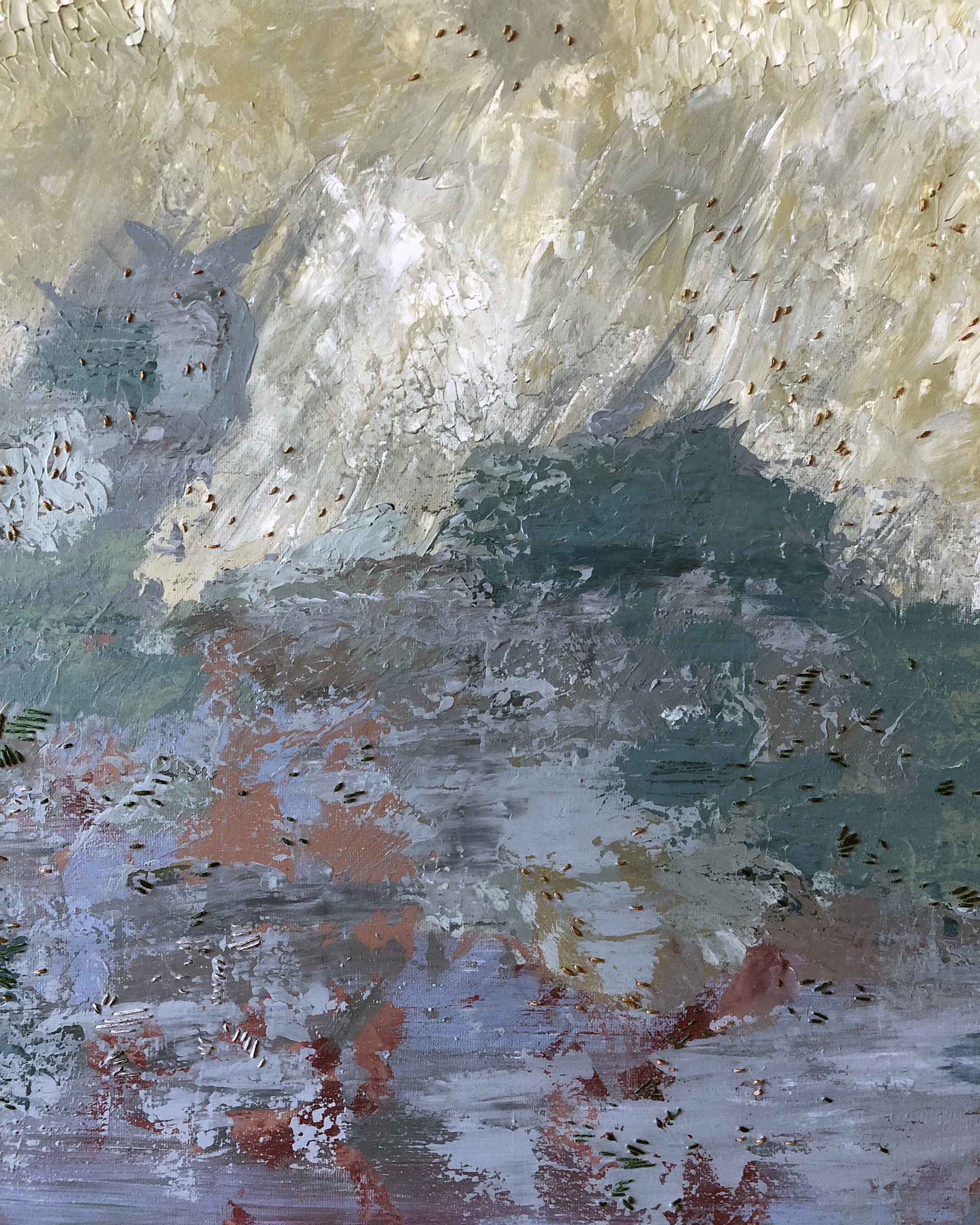 Acrylic paint and linen thread on canvas